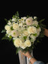 Arreglo floral en tonos blancos, verde.